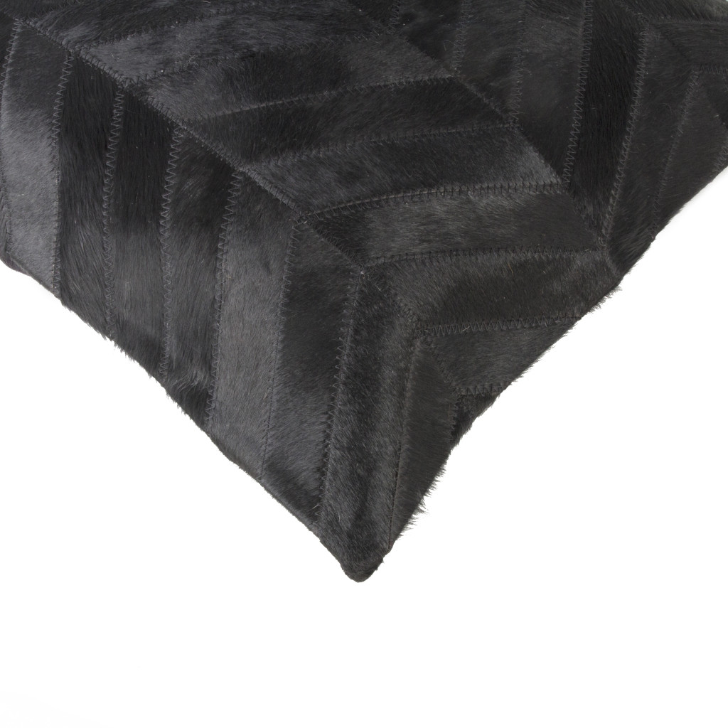 Unique and decorative, this set of two 18-inch black chevron cowhide throw pillows delivers graphic texture with boutique-level refinement. Crafted from premium genuine cowhide, they offer a sleek statement that still feels timeless.