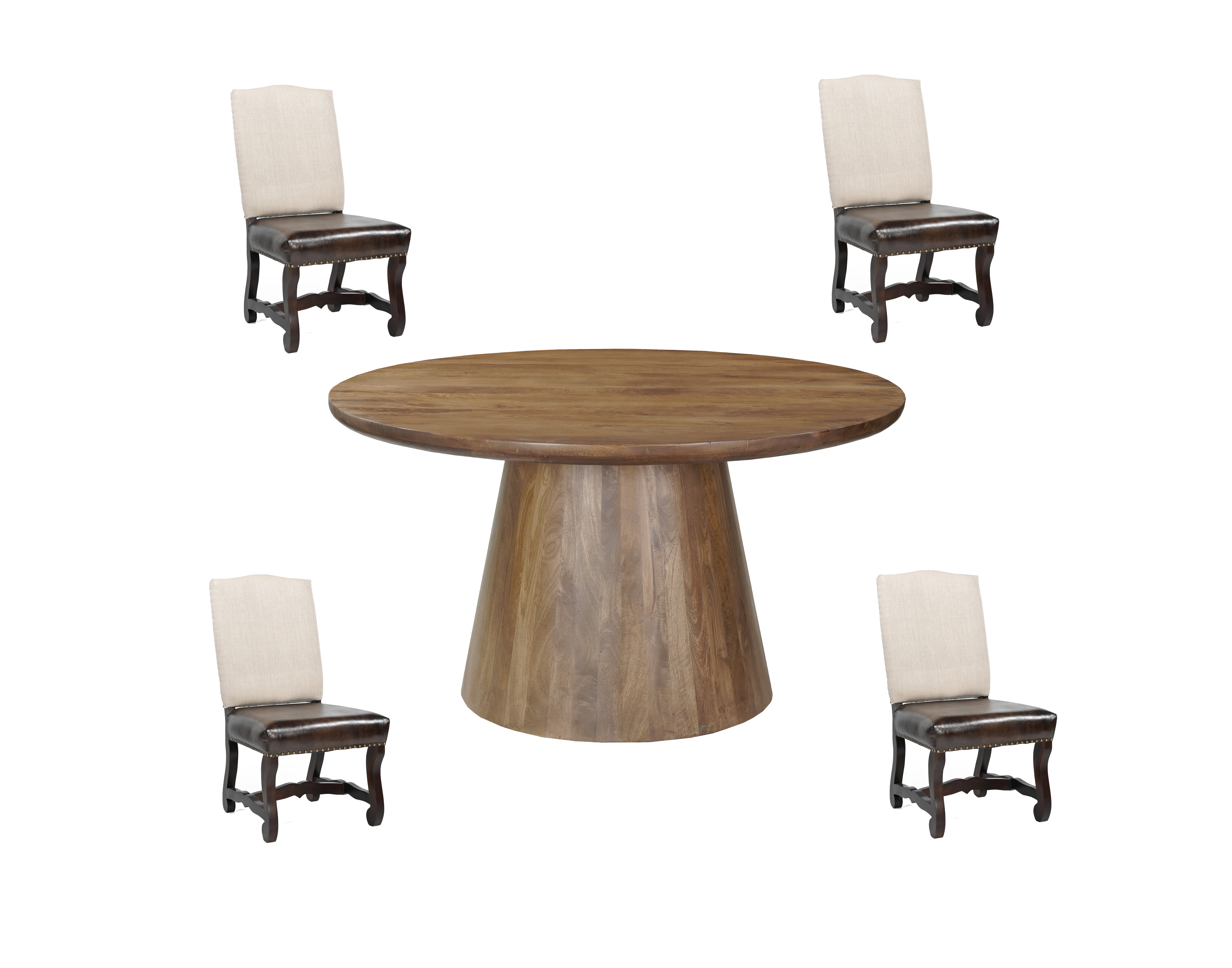 Dark Brown + Black Solid Wood Dining Set | Four Chairs