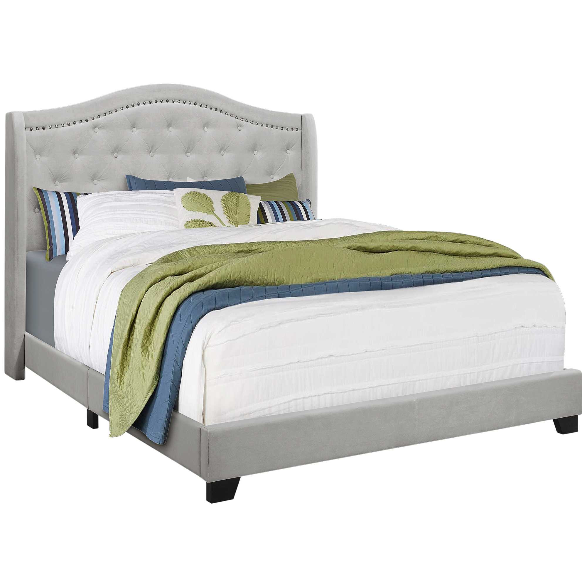 Gray Solid Wood Queen Linen Bed Frame | Nailhead Trim