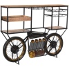 Add a touch of modern rustic and functionality to your home with this dark gray iron and solid wood round rolling bar cart. The bar cart frame is made from durable iron, ensuring stability and longevity. The solid wood top adds a natural and elegant touch to the overall design. With its round shape, this bar cart stands out as a stylish centerpiece. A versatile piece for any space. The rustic dark gray color adds a subtle and modern touch to your home. Enhance your entertaining experience and bring convenience to your home with this charming bar cart. 29-inch H x 22-inch W x 17-inch D