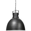 Your home will have the perfect touch of industrial design and ambient lighting with this Industrial Black Metal Hanging Pendant Light. The metal shade of this hanging light has a larger dome shape and has metal detailing all around it. The top of the dome shape has a knob shape that connected it to the chain that helps you hang it up. The detailing on the lamp is made from metal and colored in a black color. There is a white colored diffuser plate at the bottom of the lamp as well. The light this hanging light throws is stunning and diffused enough to elevate any space it is used in. You can use it in the hallway or in your bedroom as the nature of the light will work with any interior style you already have in your home. 20″ H x 17″ W x 17″ D